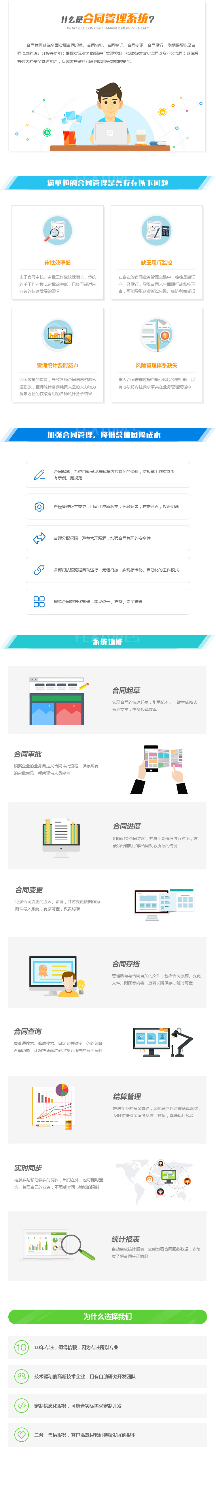 合同管理系统全面实现合同起草、合同审批、合同签订、合同变更、合同履行、到期提醒以及合同信息的统计分析等功能;根据实际业务情况进行管理控制,搭建各类审批流程以及业务流程;系统具有强大的安全管理能力,保障客户资料和合同信息等数据的安全。